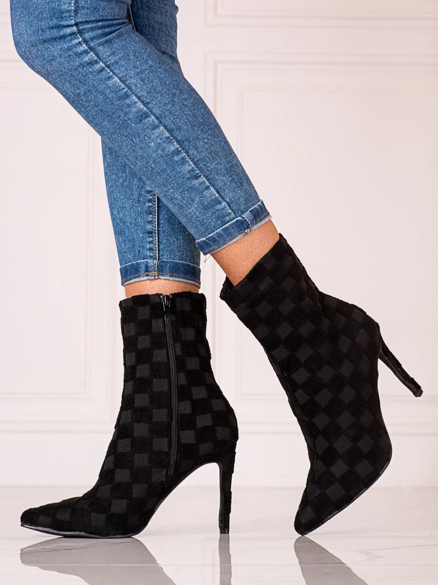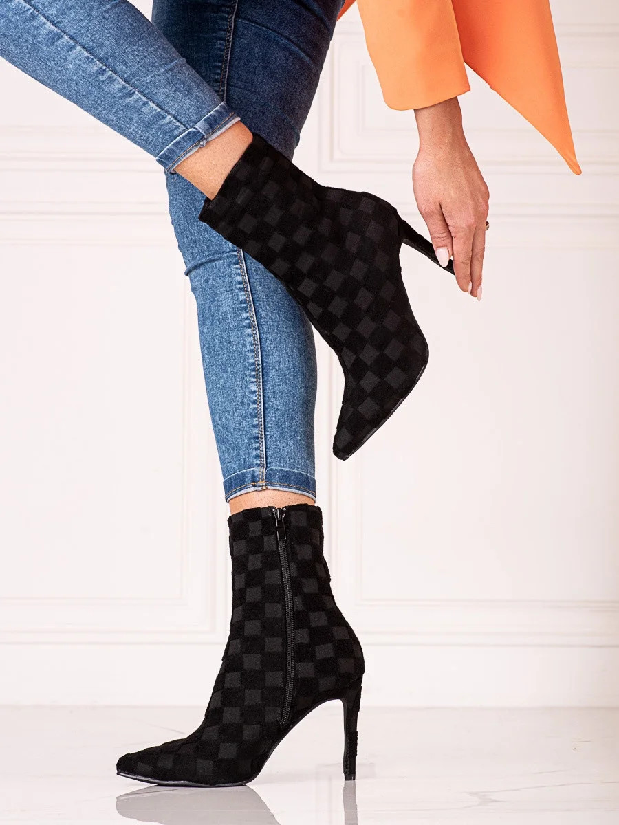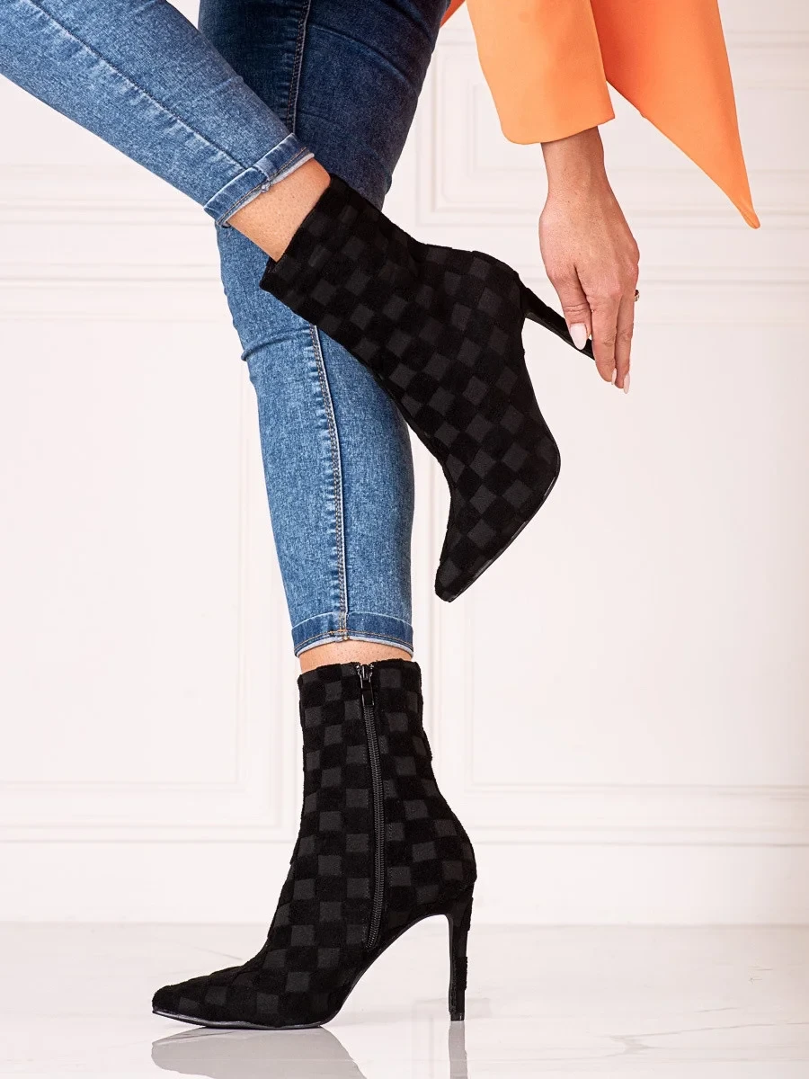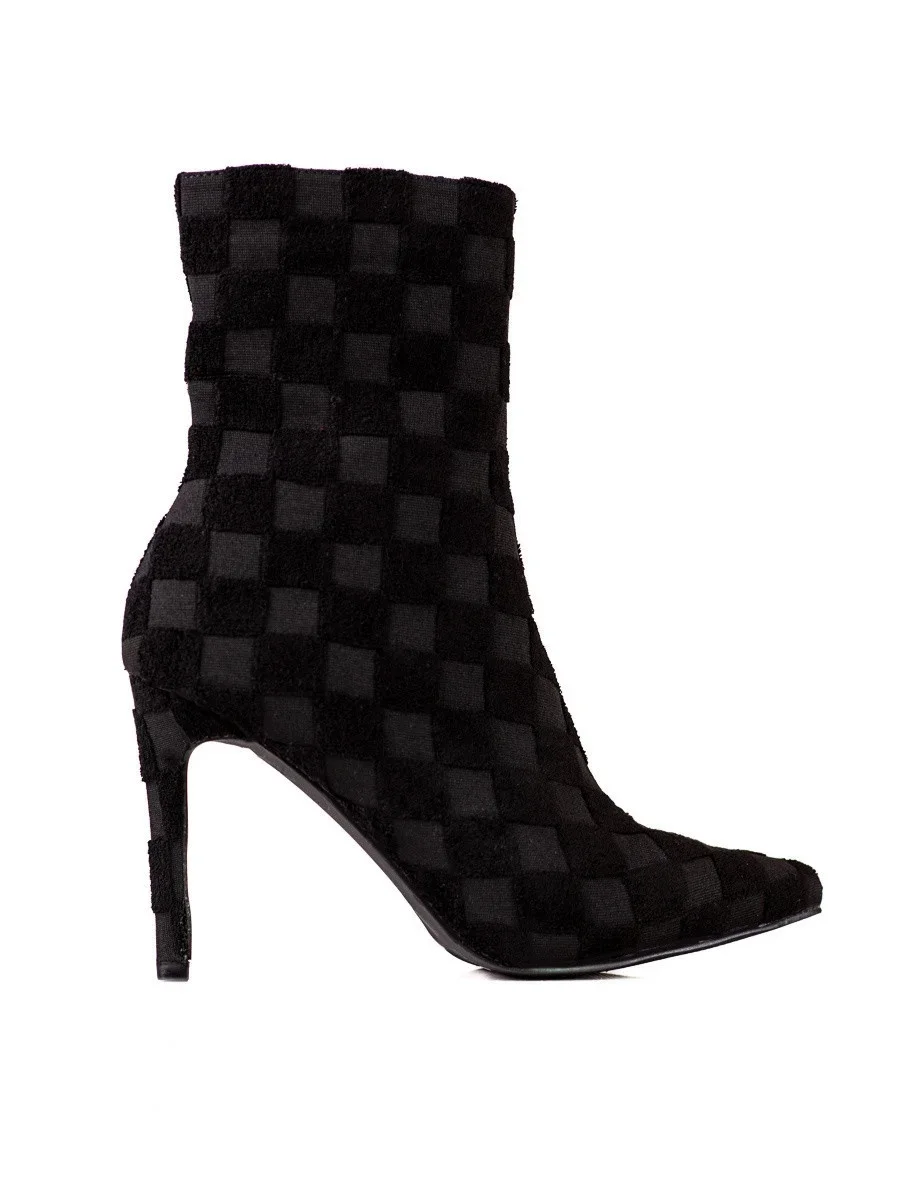 Exkluzívní dámské kotníčkové boty černé na jehlovém podpatku