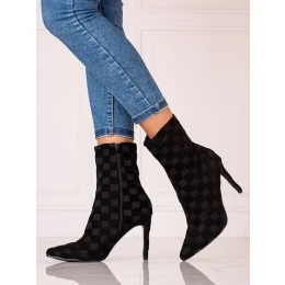 Exkluzívní dámské kotníčkové boty černé na jehlovém podpatku