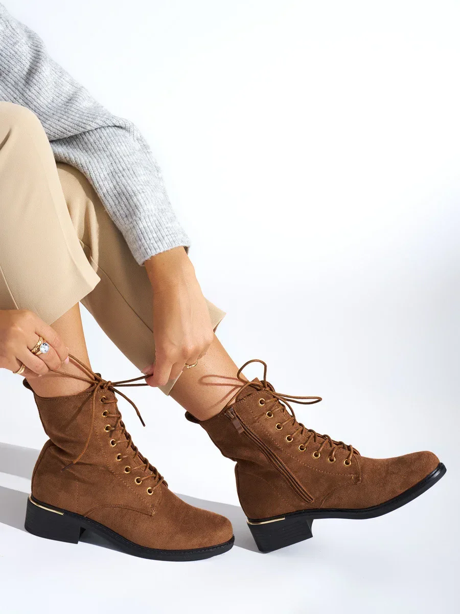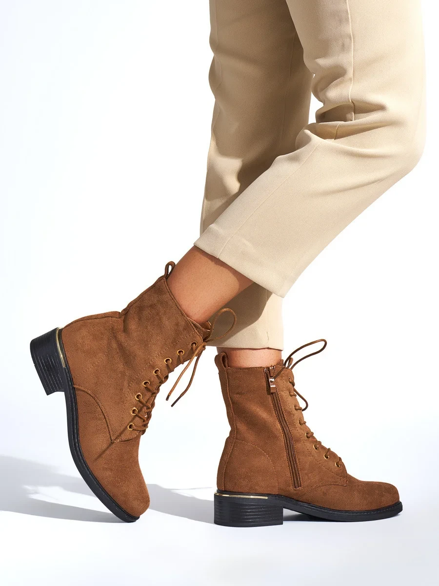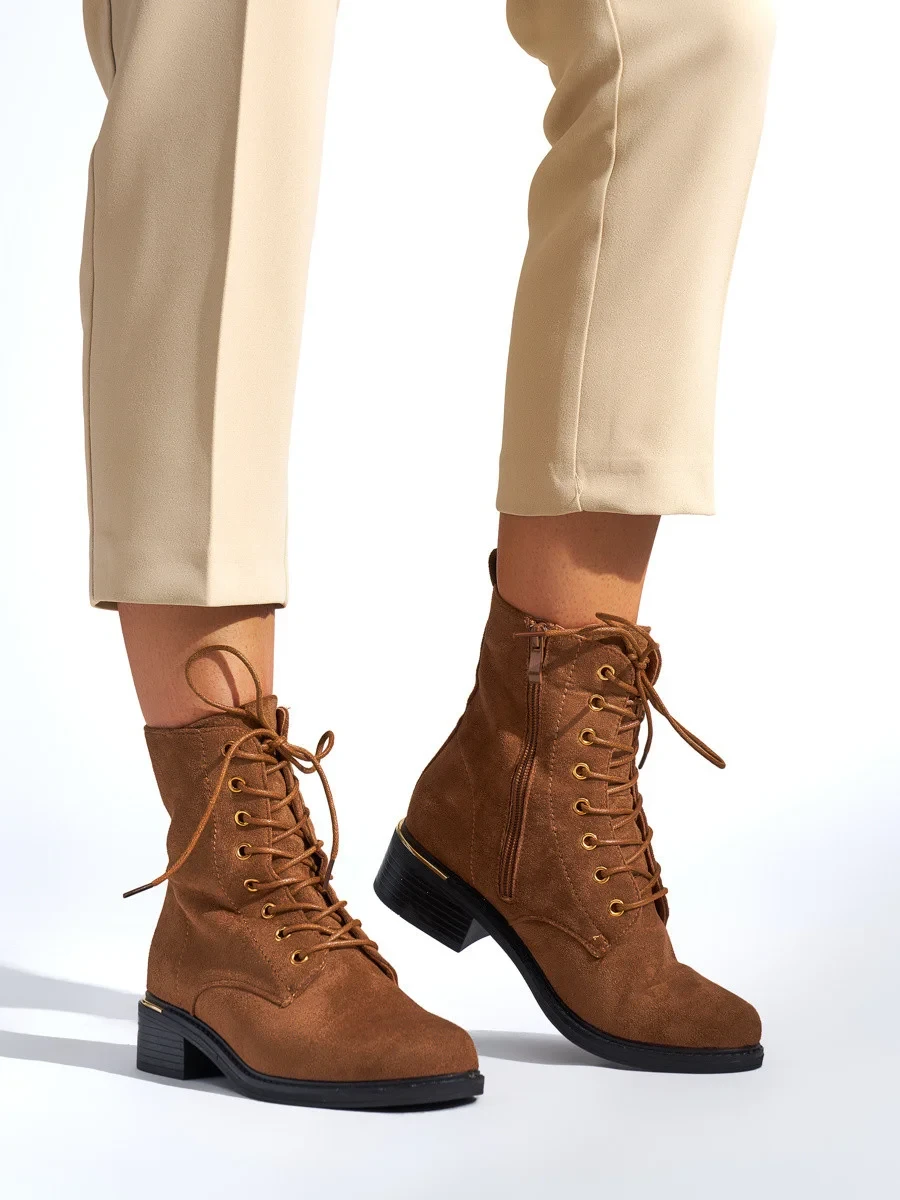Exkluzívní hnědé kotníčkové boty dámské na širokém podpatku