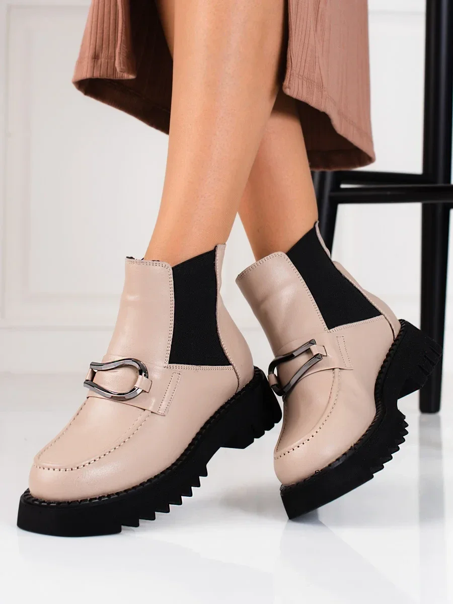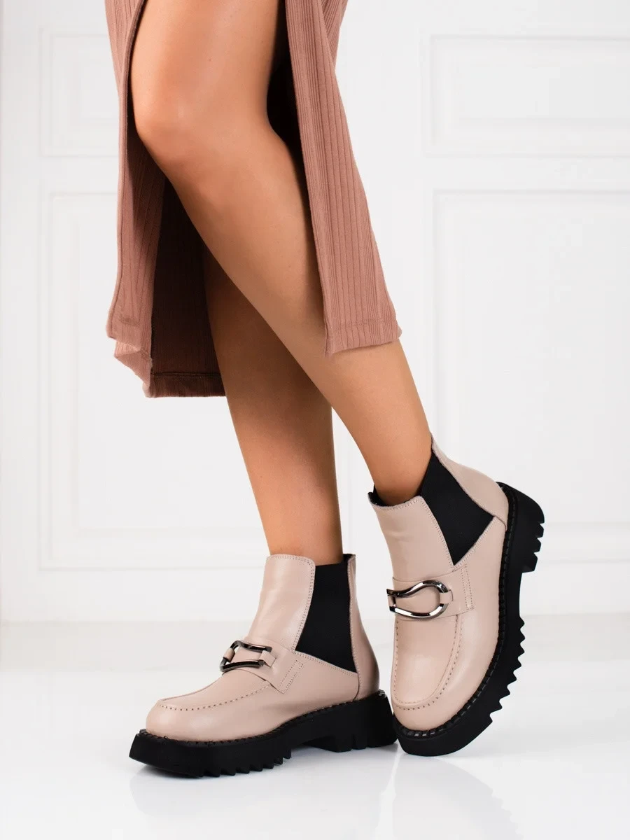 Přidání recenze k Exkluzívní kotníčkové boty dámské hnědé na plochém podpatku