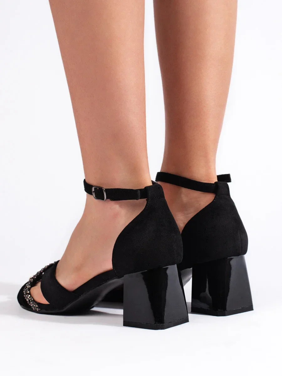 Exkluzívní sandály dámské černé na širokém podpatku