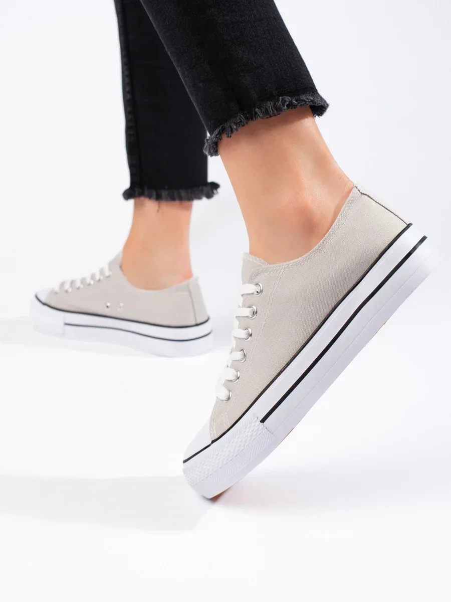 Exkluzívní tenisky šedo-stříbrné dámské bez podpatku