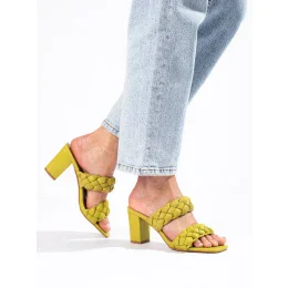 Exkluzívní zelené nazouváky dámské na širokém podpatku