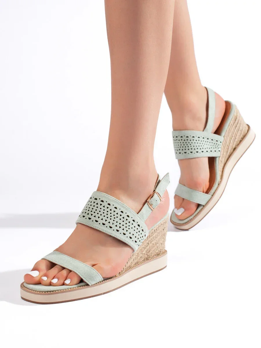 Exkluzívní zelené sandály dámské na klínku