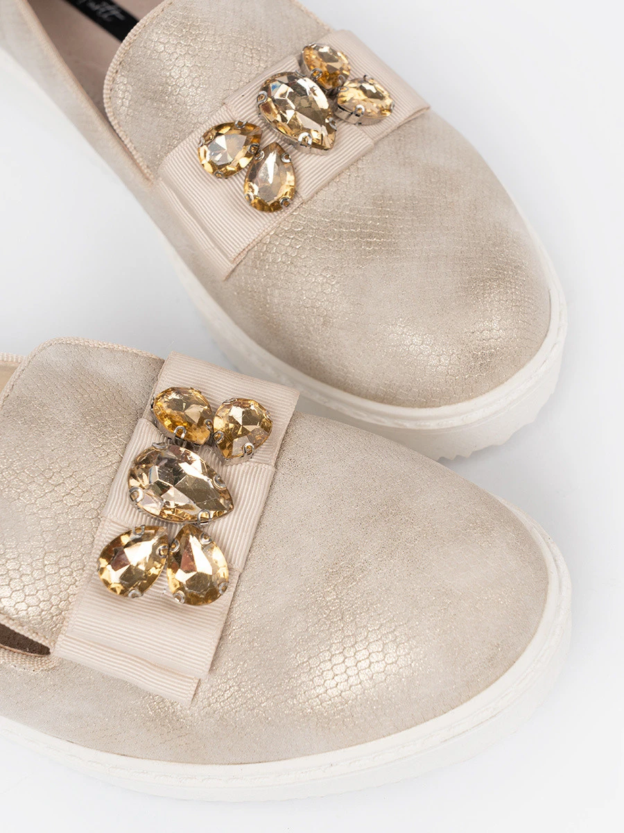 Přidání recenze k Exkluzívní zlaté dámské mokasíny platforma