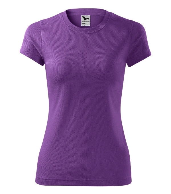 rychleschnoucí materiál lehce vypasovaný střih s bočními švy úzký lem průkrčníku z vrchového materiálu vnitřní část průkrčníku začištěna páskou z vrchového materiálu zpevnění ramenních švů páskou ideální pro sport a pohybové aktivity vhodné pro sublimační potisk (světlé barvy)
