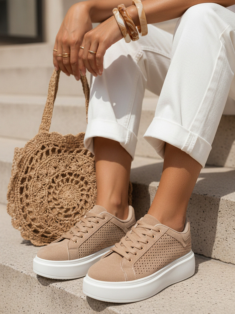 Tenisky se dobře kombinují s džínami, látkovými kalhotami a šaty rovného střihu a vytvářejí styly do města, na běžné oblékání do práce nebo na cesty. Zvýšená podrážka pomáhá udržet pohodlí při chůzi a perforace se dobře osvědčí v teplejších dnech.
