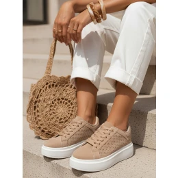Sportovní střih na zvýšené podrážce usnadňuje budování proporcí siluety a dobře funguje při každodenním tempu. Perforované panely podporují prodyšnost a pohodlí při dlouhodobém nošení. Plášť z ekokůže poskytuje estetickou úpravu a snadnější údržbu. Šněrování umožňuje lepší přizpůsobení noze.