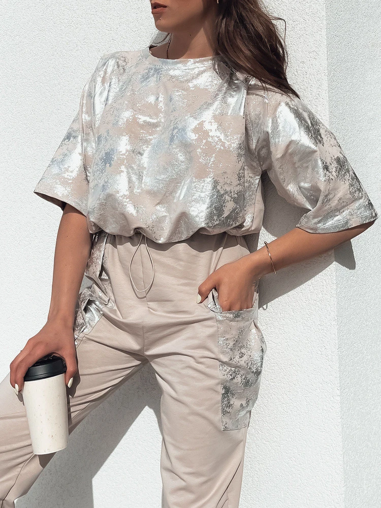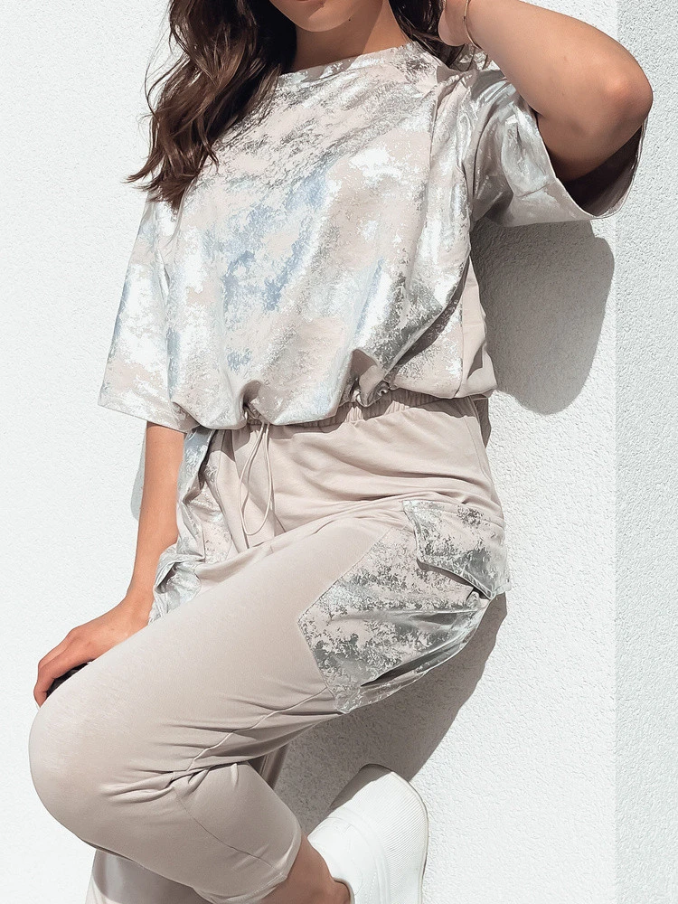 Objevte soupravu BIRWEKI, která je synonymem nonšalance a sofistikovaného stylu. Příjemné tričko s kulatým výstřihem a krátkými rukávy je dokonalým základem pro mnoho sestav, zatímco jedinečný motiv kravaty podtrhne vaši individualitu. Kalhoty s pohodlnou šňůrkou v pase zajistí celodenní pohodlí, zatímco dvě praktické kapsy dodají funkčnost. Vyberte si tuto soupravu, abyste vynikli a cítili se výjimečně každý den.