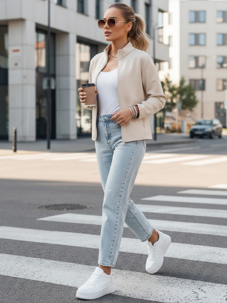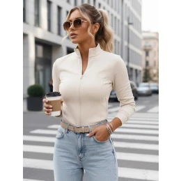 FashionStreet BY1561 dámská mikina na zip se stojáčkem béžová