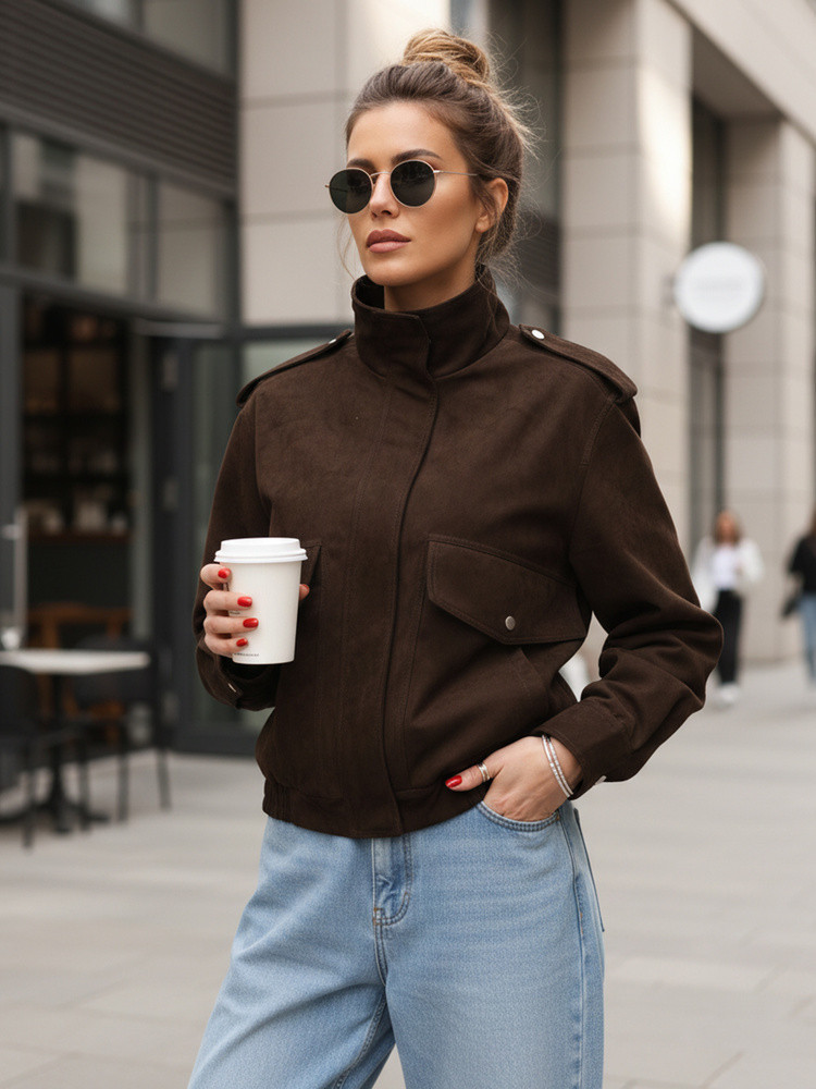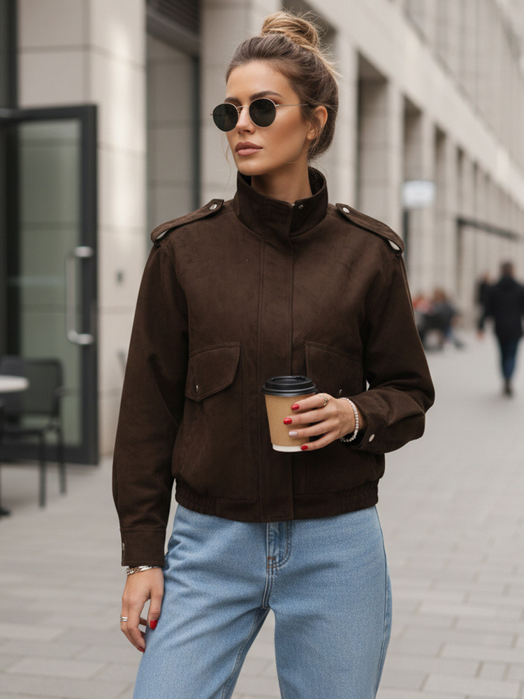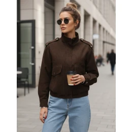 FashionStreet dámská semišová bunda bomber v čokoládové barvě TY5571