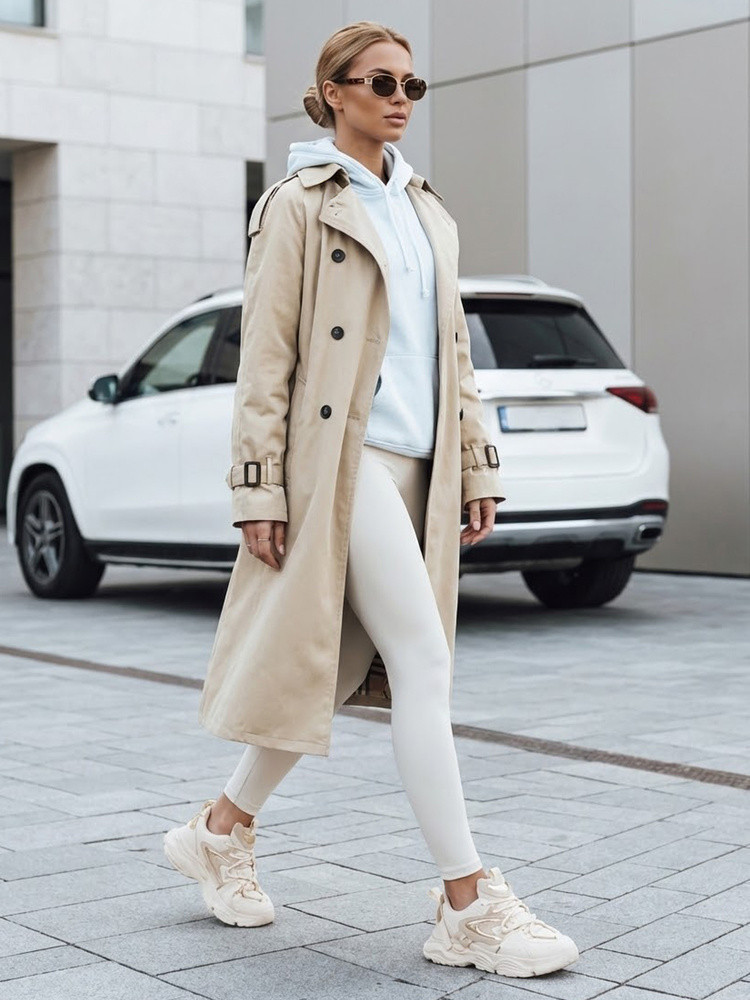 Trenčkot se dobře hodí k městskému, kancelářskému i smart casual stylu a lze jej nosit s košilí a látkovými kalhotami, stejně jako s džínami a jednoduchým topem. Pásek umožňuje měnit proporce siluety v závislosti na příležitosti a klasický límec dodává elegantní nádech. Střih je vhodný na jaro a podzim, kdy potřebujete lehký svrchní oděv.