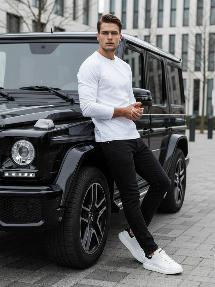 FashionStreet pánské bílé tričko s dlouhým rukávem LX0579