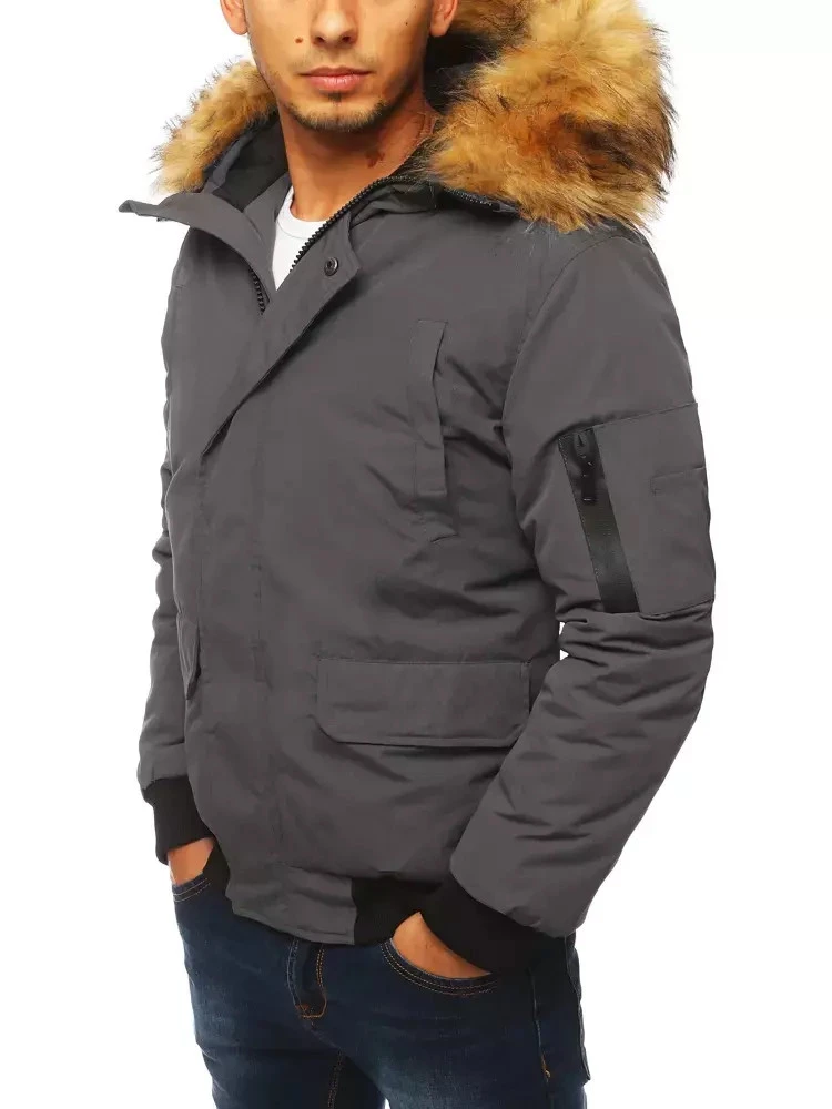 FashionStreet tmavě šedá pánská zimní bunda TX3942