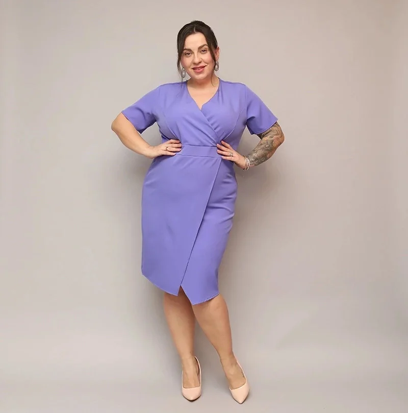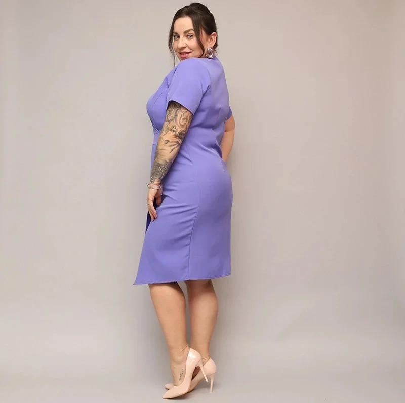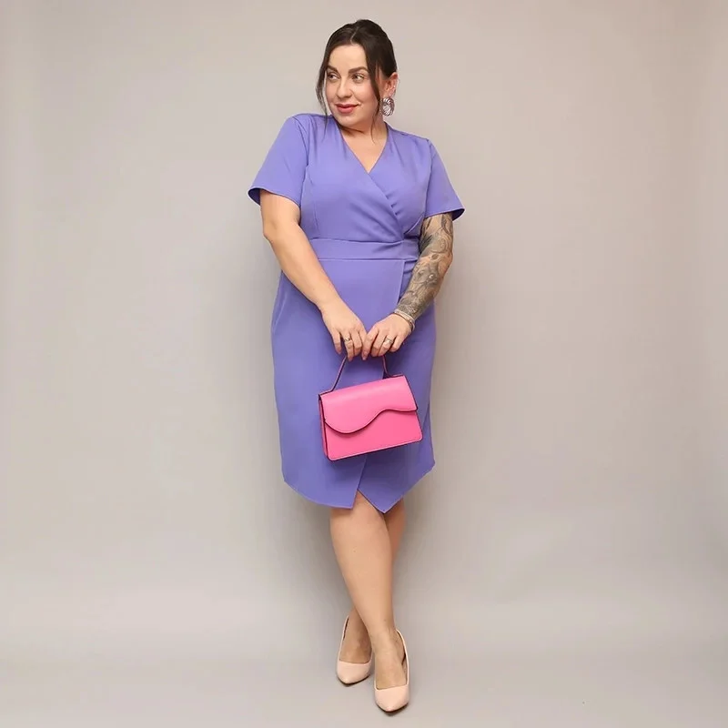 Přidání recenze k Fialové dámské přeložené obálkové šaty v délce ke kolenům (743)