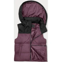 Fialovo-černá krátká dámská vesta J.STYLE s kapucí (16M9112-53)