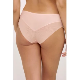 Figi AV 2221 Apricot to połączenie subtelnej elegancji i codziennego komfortu. Delikatny, morelowy odcień bieliźnie nadaje świeżości i kobiecego uroku, a koronkowa aplikacja z przodu w połączeniu z transparentnym tiulem pięknie wysmukla sylwetkę i podkreśla linię talii.