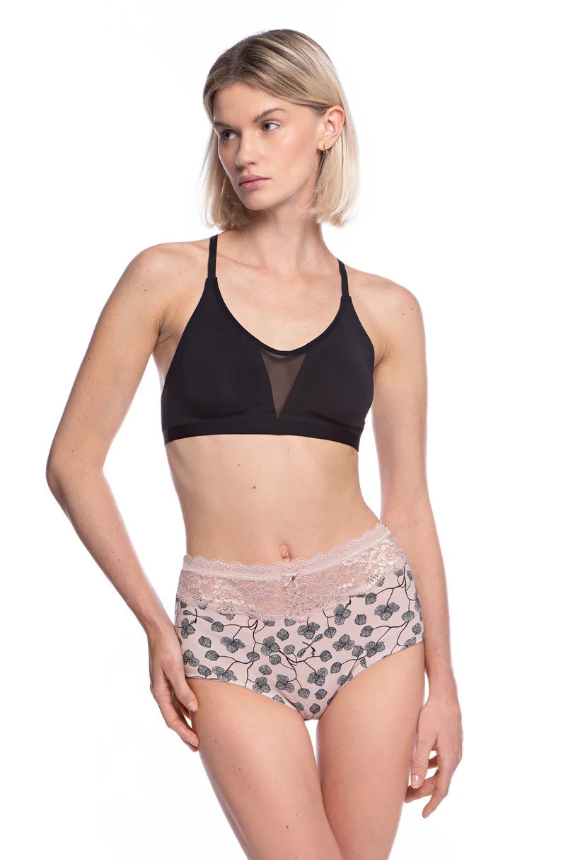 Dámské bavlněné kalhotky. V balení po 2 kusech, jeden hladký, druhý s potiskem, vzadu zakončený jemnou krajkou.