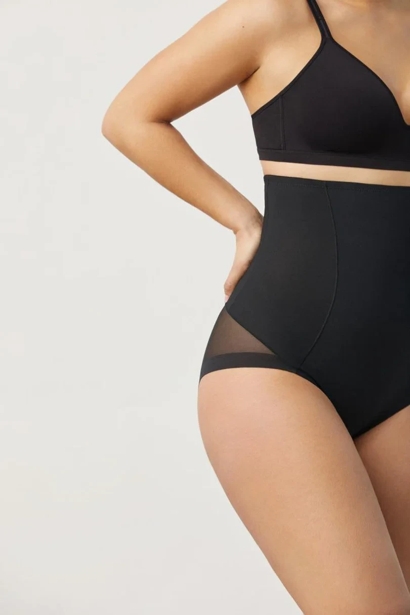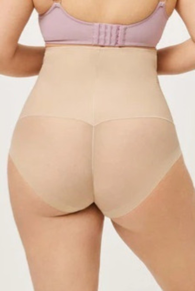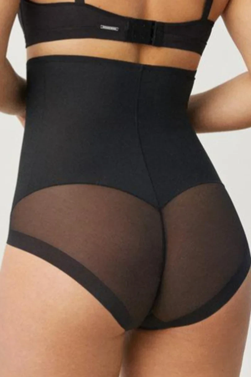 Zmenšující kalhotky s vysokým pasem.Hladký přední díl vyhlazuje oblast břicha, spodní díl je atraktivně modelovaný s nařaseným svislým švem.
