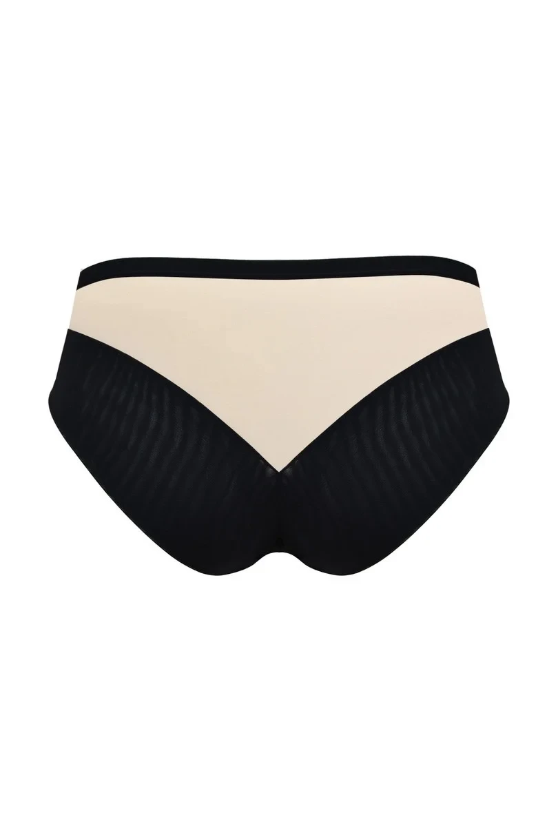 Klasyczne figi pełne CABARETTE II 19221, które łączą ponadczasową elegancję z wygodą. Przód zdobi efektowna wstawka z koronki ze złotą nitką, dodająca bieliźnie luksusowego charakteru. Boczki wykonane z delikatnego, beżowego tiulu subtelnie otulają sylwetkę, zapewniając komfort i lekkość. Tył uszyty z gładkiej mikrofibry doskonale dopasowuje się do ciała, a wykończenie nogawek podwójnym tiulem nadaje całości wyjątkowego wyrafinowania. Figi CABARETTE II to idealny wybór na co dzień, oferując niezrównane połączenie estetyki i funkcjonalności.