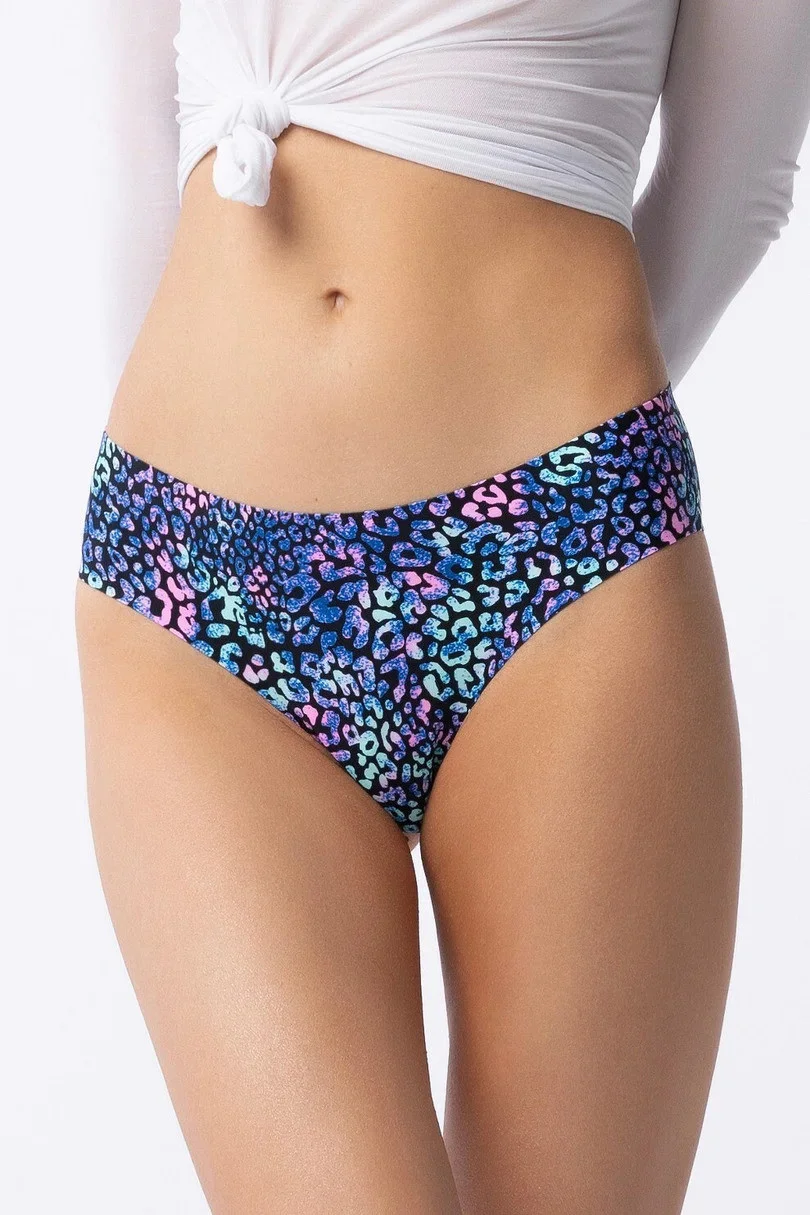 FIGI ILLUSION BRASIL SIMPLE jsou bikiny brazilského střihu, laserem střižené, zdobené barevným potiskem. Bezešvé, odhalující hýždě. Neviditelné pod přiléhavým oblečením. Baleno v ozdobné krabičce. Ideální dárek.