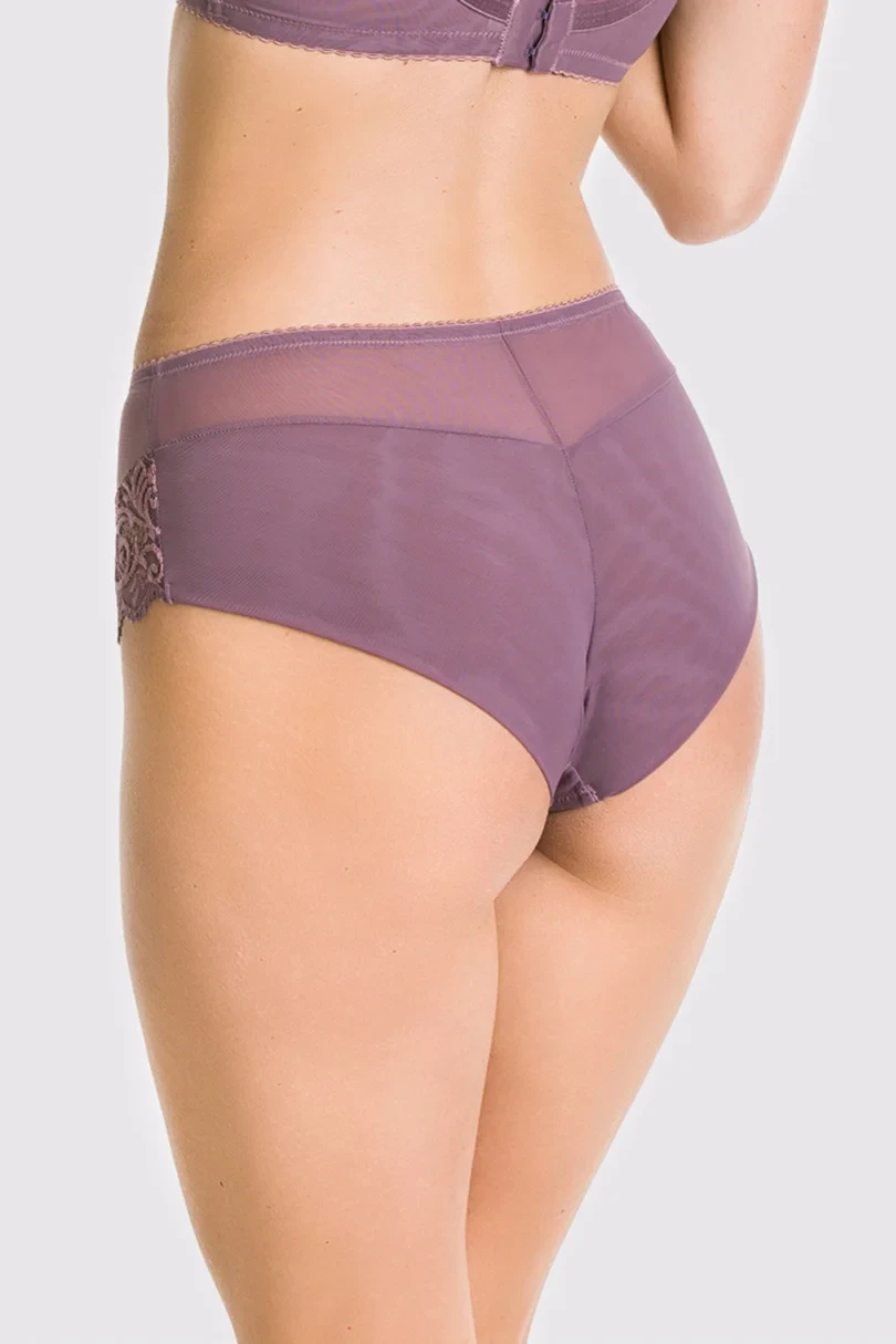 Plné kalhotky Lea jsou soupravou ke stejnojmenné podprsence. Kalhotky jsou vyrobeny z tylu a jemné bohaté krajky, která zdobí přední díl a vyplňuje zadní část kalhotek, díky čemuž se kalhotky nerýsují pod oblečením