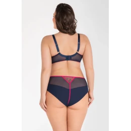 PRZÓD: 2 vrstvy elastického tylu + výšivka podšitá stabilním tylem, na bocích elastický tyl x1, nohavice zakončené úzkou gumičkou, ozdobné švy potažené stuhou v kontrastní barvě.