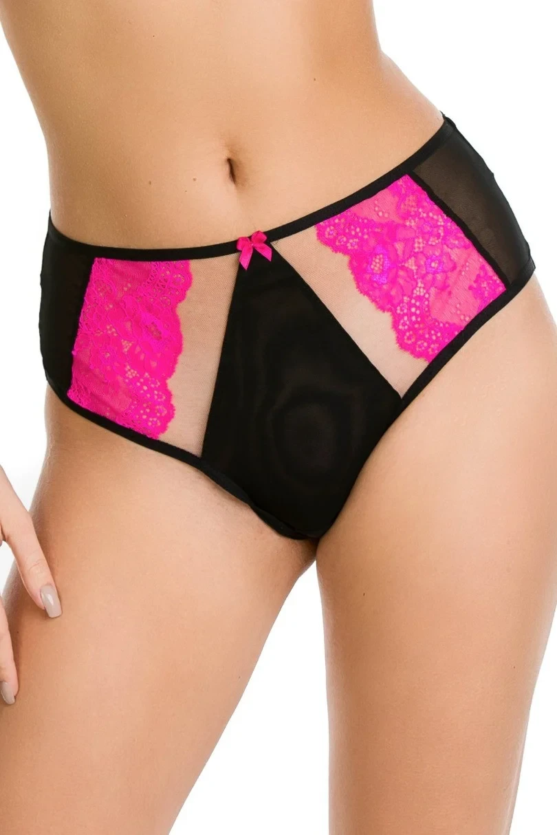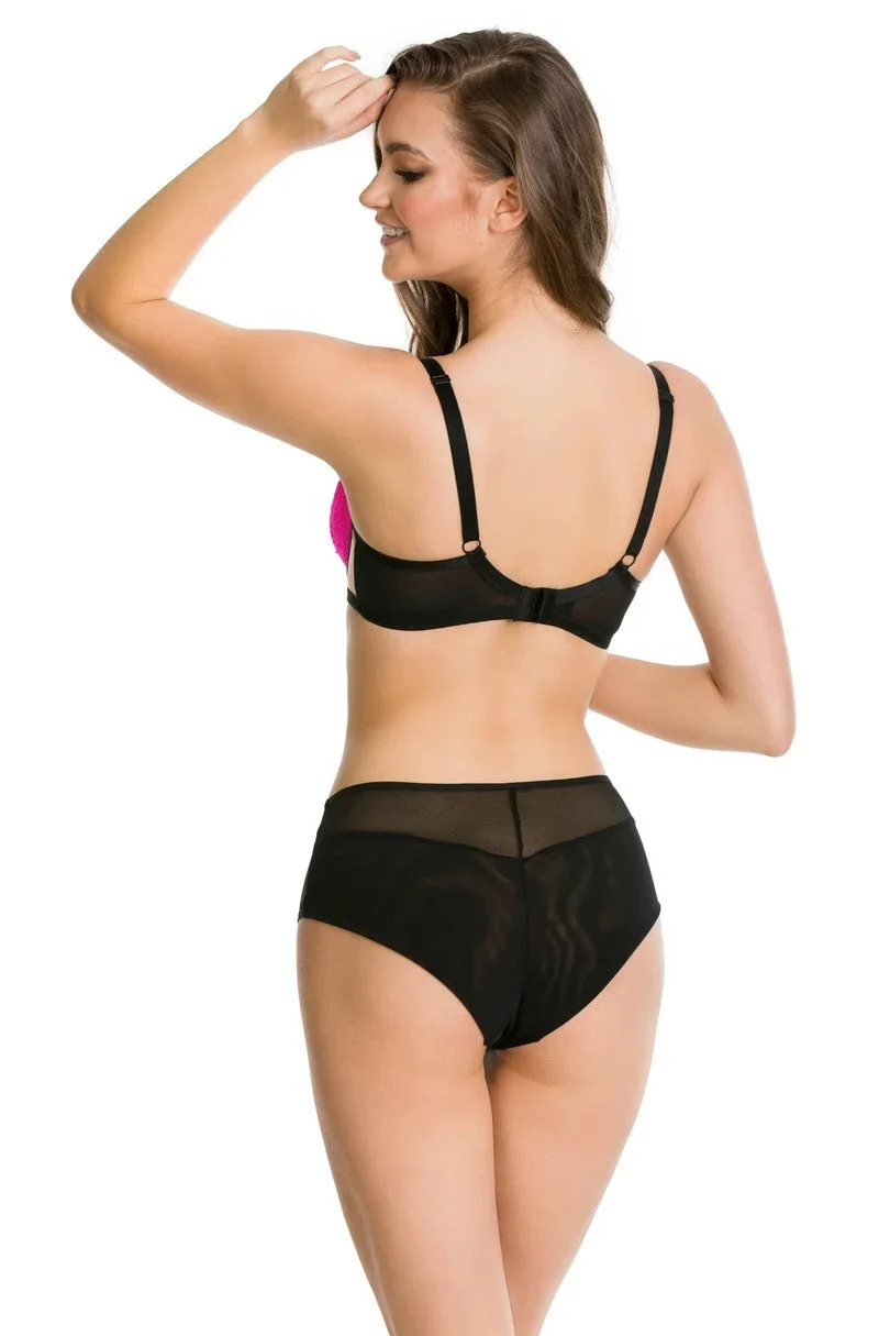 Celkové kalhotky Fluo jsou soupravou ke stejnojmenné podprsence. Kalhotky jsou vyrobeny z tylu, který vyplňuje celou zadní část kalhotek, a z tylu a krajky, která zdobí přední část kalhotek.