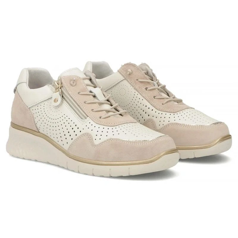 Filippo DP7605 kožené dámské ažurové béžové tenisky na platformách