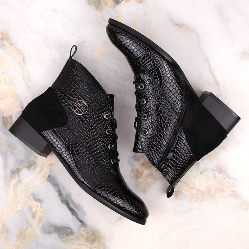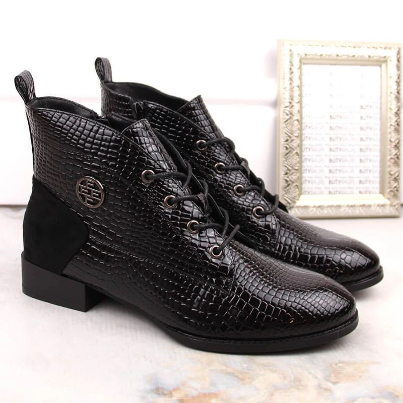 Filippo W PAW478A černé lakované zateplené boty s krokodýlem