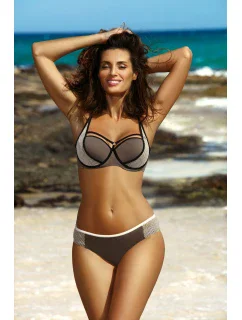 Zajímavé plavky s vyztuženou podprsenkou a svůdnými kalhotkami v žhavém brazilském designu. Skvělá, lehce lesklá, perleťová látka v jedinečném provedení, jako je růžové zlato, khaki, lanýžová..