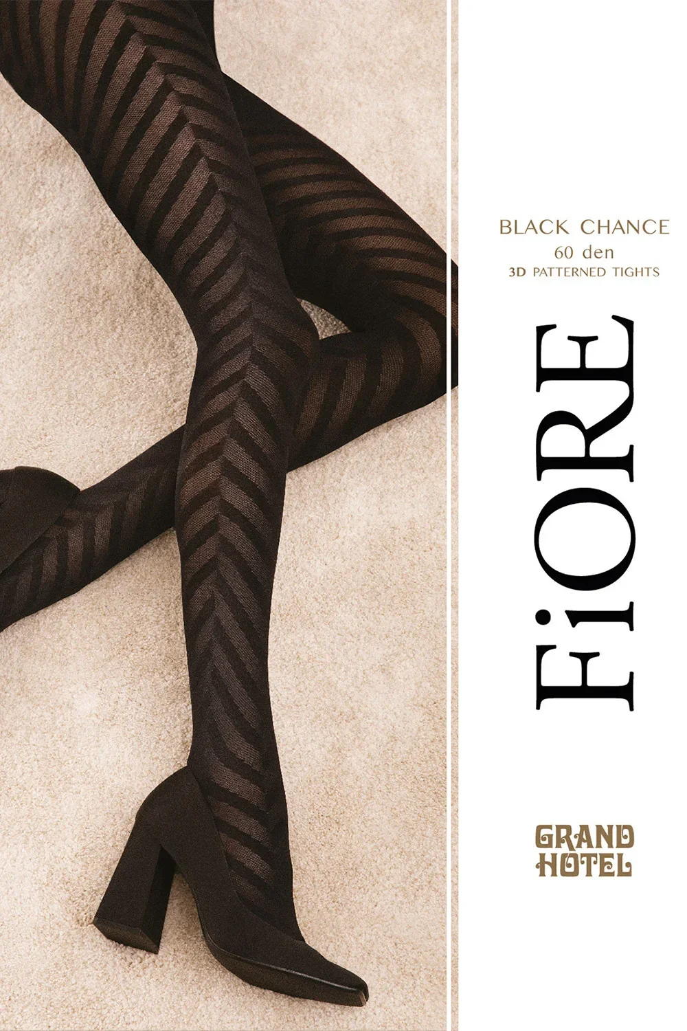 Punčochové zboží značky Fiore, model Black Chance 60 DEN G6094, vyrobeno z 90% polyamidu, 10% elastanu, bez vyznačených špiček, tloušťka 60 DEN, bez vyznačených nohaviček.