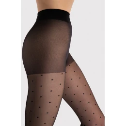 Punčochové zboží značky Fiore. Kim 15 den model. Výrobek je vyroben z 88 % z polyamidu a 12 % z elastanu. Výrobek pro ženy. Tloušťka: 15 DEN. Vlastnosti produktu: módní tečky. Žádné označené prsty. Označená sekce kalhotek.