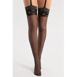 Punčochové zboží značky Fiore, model Luxe 15 DEN O4100, vyrobené z 84 % polyamidu, 10 % polypropylenu, 3 % elastanu, 3 % metalizované příze, bez vyznačených špiček, tloušťka: 15 DEN, pro ženy.