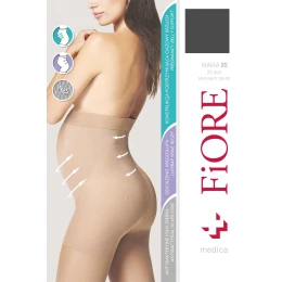 Punčochové zboží značky Fiore. model Mama 20 den M5208. Výrobek je vyroben z 80% polyamidu, 20% elastanu. bez vyznačených špiček. těhotenské oblečení. tloušťka: 20 DEN. dámský výrobek. vyznačená část kalhotek.
