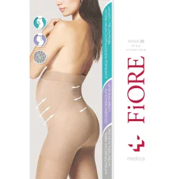 Punčochové zboží značky Fiore. model Mama 20 den M5208. Výrobek je vyroben z 80% polyamidu, 20% elastanu. bez vyznačených špiček. těhotenské oblečení. tloušťka: 20 DEN. dámský výrobek. vyznačená část kalhotek.