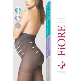 Punčochové zboží značky Fiore, Model Mama 40 den M5209, vyrobeno z 80% polyamidu, 20% elastanu, bez vyznačených špiček, těhotenské oblečení, tloušťka: 40 DEN, dámské oblečení, označené kalhotky.