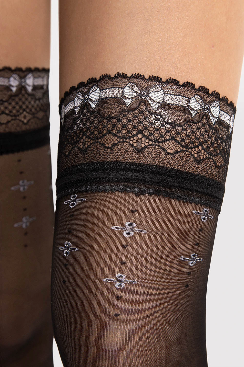 Punčochové kalhoty Fiore, model Reveil 20 DEN O4102, vyrobené z 86 % polyamidu, 10 % elastanu, 4 % polypropylenu, bez vyznačených špiček, se silikonovou páskou pro podporu, tloušťka: 20 DEN, pro ženy.
