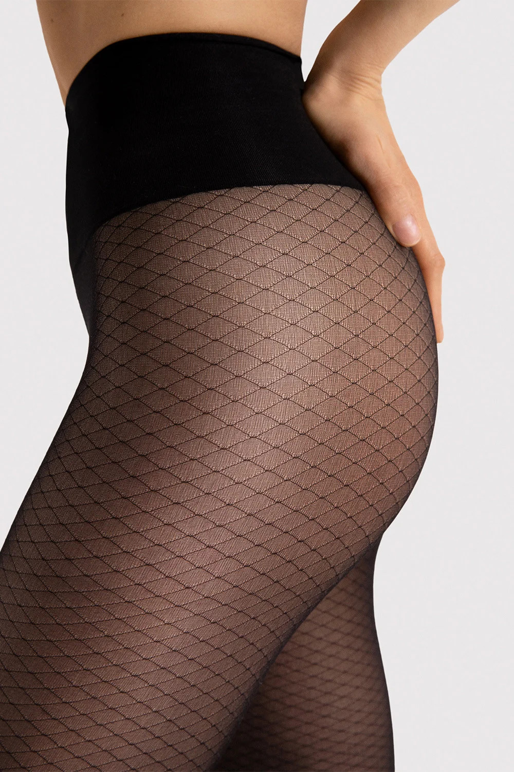 Punčochové zboží značky Fiore. model Sierra 20 DEN F5006. výrobek je vyroben z 98 % polyamidu, 2 % elastanu. bez vyznačených špiček. modelovací oděv. korekční oděv. tloušťka: 20 DEN. kalhotky s vysokým pasem. dámský výrobek. bez vyznačených nohaviček.