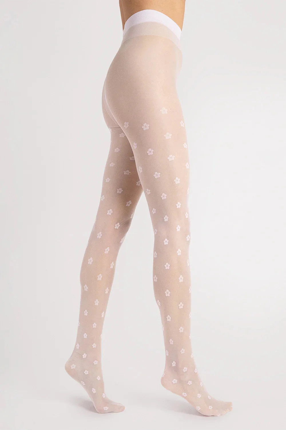Punčochové kalhoty Fiore, model Spring 20 DEN G6105, z 92% polyamidu, 8% elastanu, bez vyznačených špiček, tloušťka 20 DEN, bez vyznačených nohaviček.