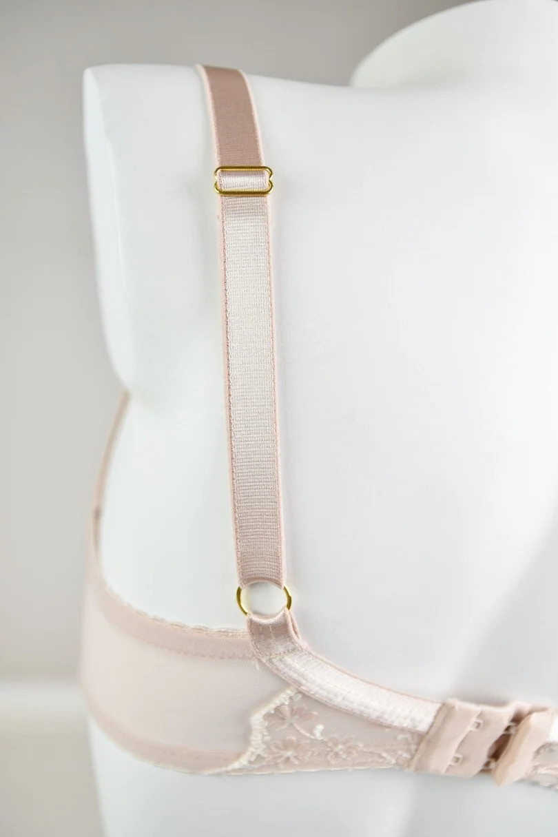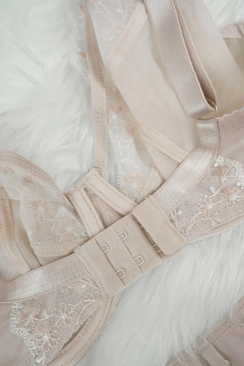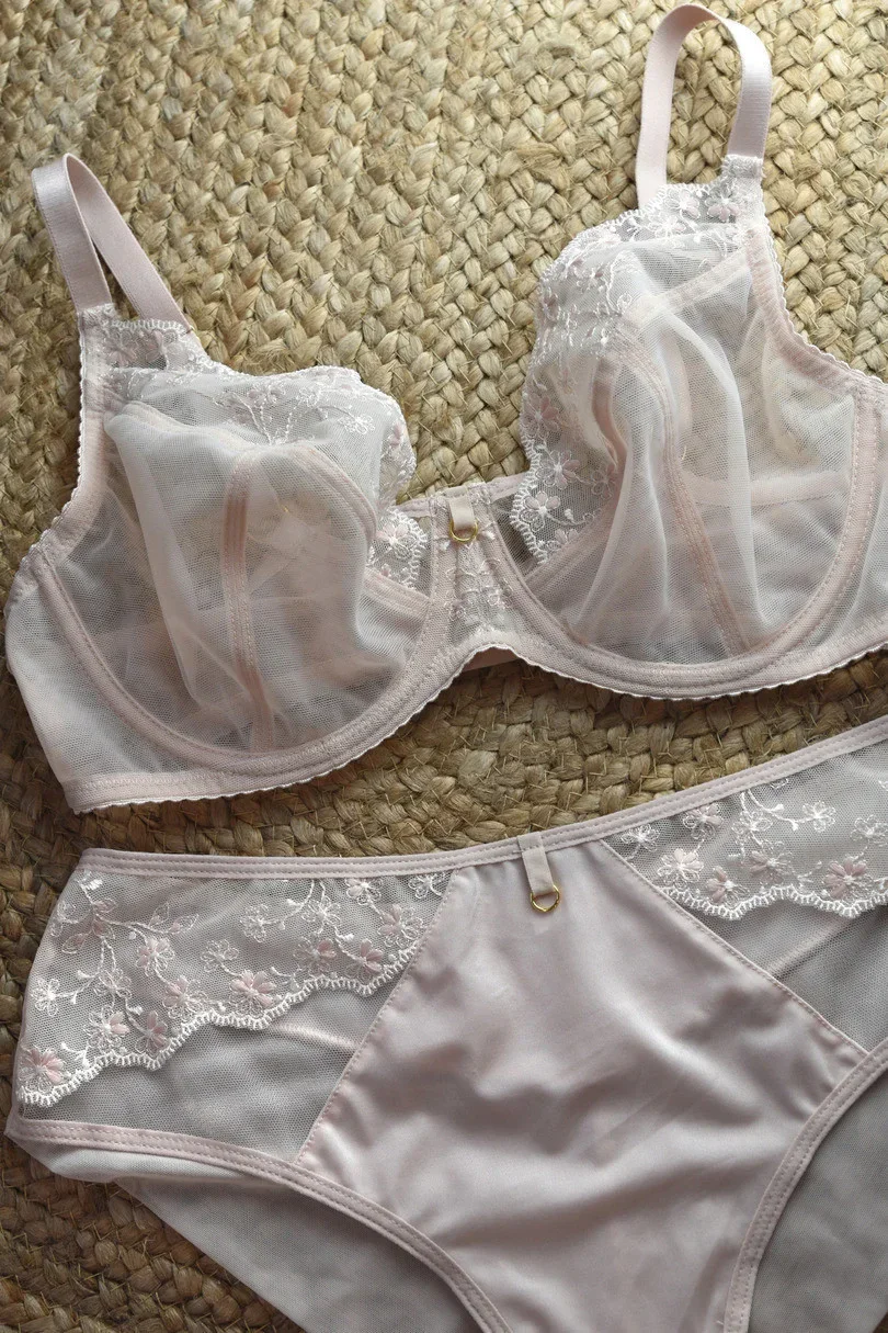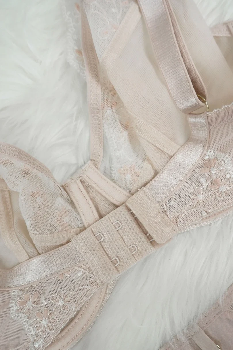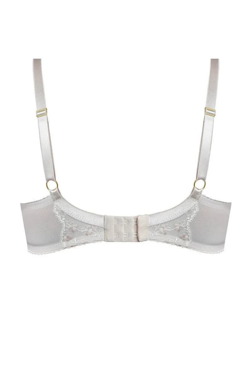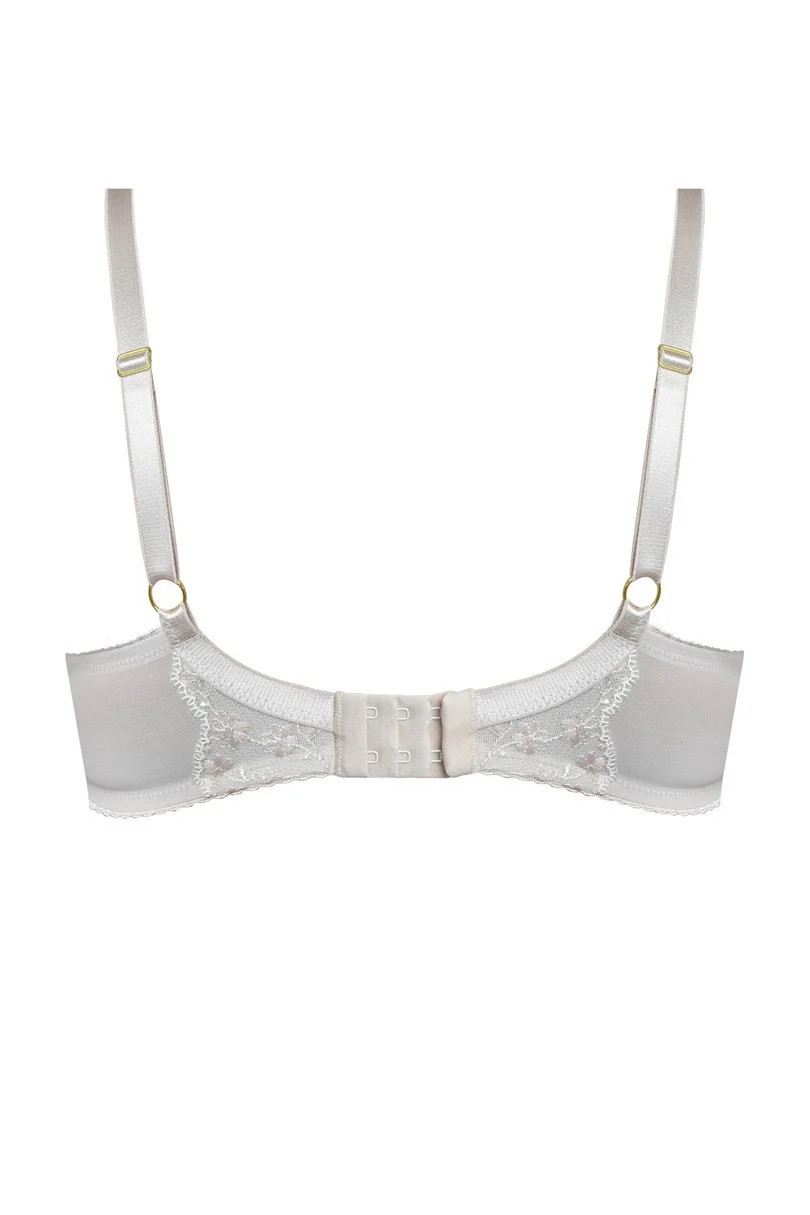 Měkká podprsenka, košíčky z kvalitní strukturální síťoviny, na které je našita krajka s květinovým motivem.