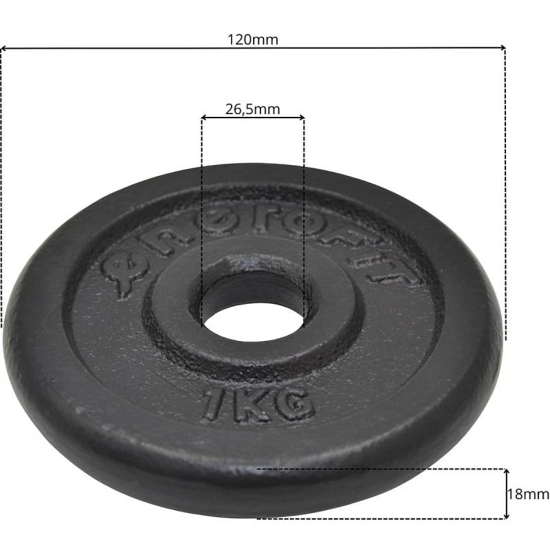 ENERO FIT Black Cast Iron Weight 1 kg fi 26,5 mm je klasický, odolný kotouč vytvořený pro intenzivní cvičení a rozvoj síly.