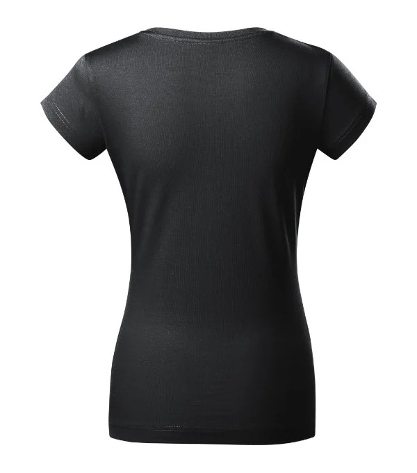 lehce vypasovaný střih s bočními švy hlubší výstřih ve tvaru V úzký lem průkrčníku z vrchového materiálu s 5 % elastanu vnitřní část průkrčníku začištěna páskou z vrchového materiálu zpevnění ramenních švů páskou rukávy kratší délky silikonová úprava