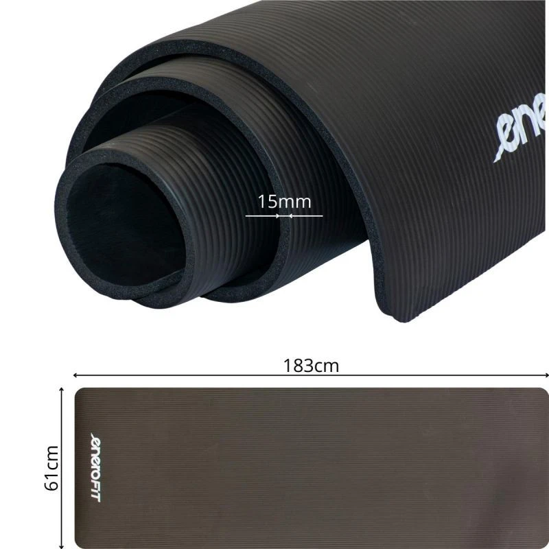 Fitness podložka ENERO FIT 183x61x1,5 cm z NBR pěny je ideální volbou pro ty, kteří si cení pohodlí, bezpečnosti a odolnosti. Silná, neklouzavá a snadno se čistí - ideální do domácnosti, posilovny, studia jógy nebo do přírody. Klasická černá podložka, která vám poskytne maximální pohodlí a profesionální podporu při každém tréninku.