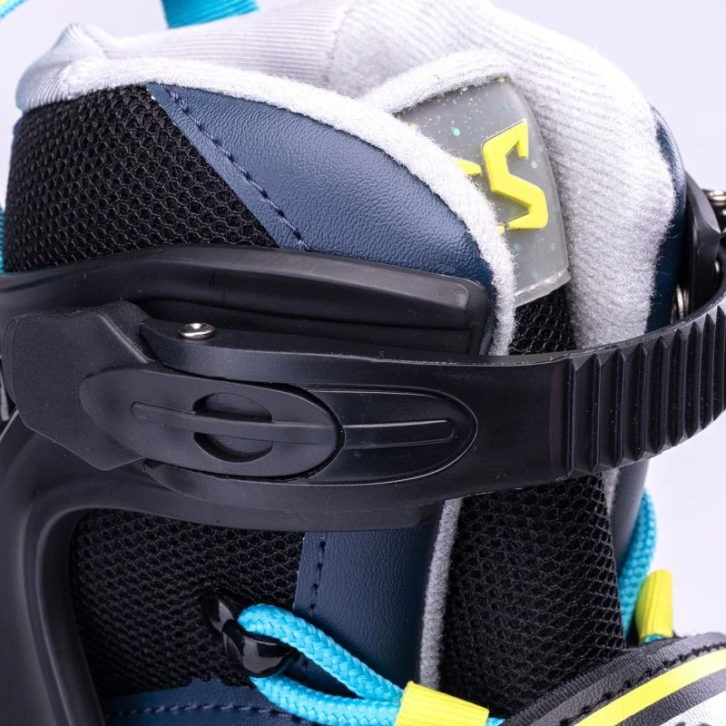 Juniorské kolečkové brusle MERON YB od společnosti Coolslide mají pohodlnou vnitřní botičku umístěnou v částečném svršku. Díky suchému zipu v přední části svršku se brusle lépe přizpůsobí noze dítěte. Díky systému nastavení velikosti brusle rostou s vaším dítětem. Tento model má navíc zabudovanou přední část chránící prsty. Praktické poutko usnadňuje oblékání bruslí na nohy. Jediná přezka v oblasti kotníku dále podporuje kotník.