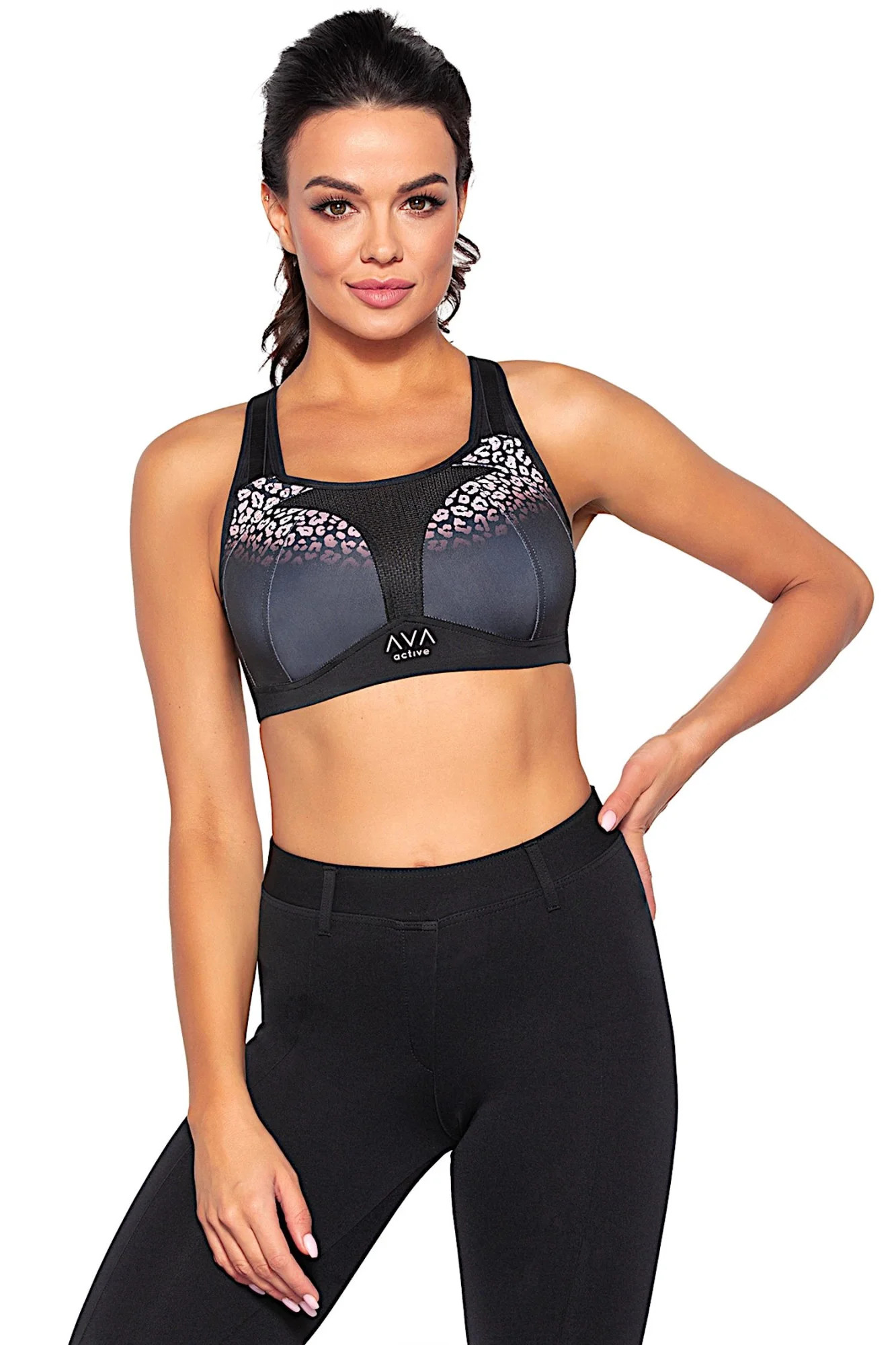 Sportovní podprsenka Carrie plus AVA - černá barva - s kosticemi - košíčky z elastického barevného mikrovlákna - podšité látkou, která absorbuje vlhkost - široká ramínka obšitá pěnou - nastavitelná a odepínatelná ramínka - čtyřstupňové zapínáníMateriálové složení: 75% polyester + 18% polyamid + 7% elastan