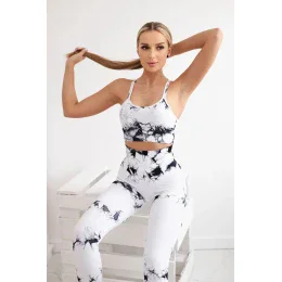 Fitness set top+ legíny push up bílý