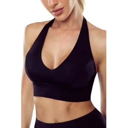 Dámský sportovní top Alexia ELDAR - černá barva - hluboký výstřih - možnost vkládání vycpávek - ozdobné elastické na zádech