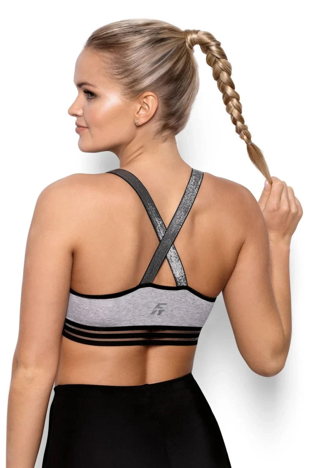 Dámský sportovní top Ariela grey ELDAR - šedá barva - materiál je prodyšný a dobře odvádí pot od těla - nevyztužené košíčky - bez kostic - ramínka jsou na zádech překřížená - širší obvod drží podprsenku bezpečně na místěMateriálové složení: 95% viskóza + 5% elastan