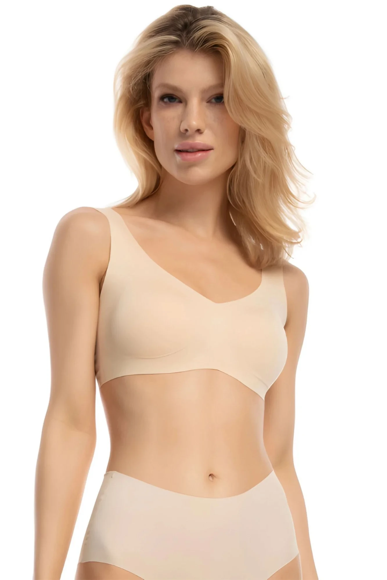 Fitness top Infinity beige JULIMEX - béžová barva - vyztužená podprsenka - z hladkého mikrovlákna - vyjímatelné vycpávky - nastavitelná a odpínatelná ramínka